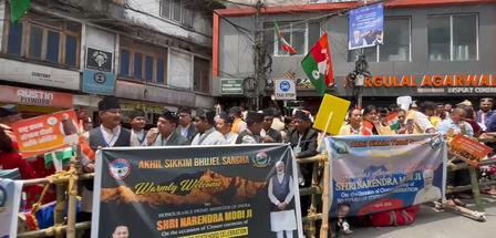 Gangtok was adorned with national flags along the route stretching from Biralu Dwar to MG Marg, creating a festive atmosphere as people eagerly awaited the Prime Minister's arrival.