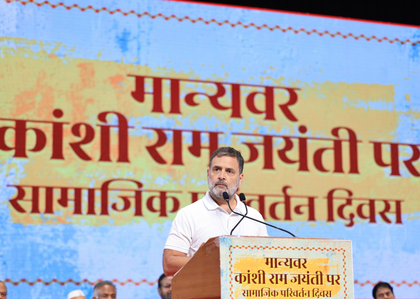 During his address, the Congress leader paid tribute to Kanshi Ram, saying he dedicated his life to the fight for equality and social justice for marginalised communities.