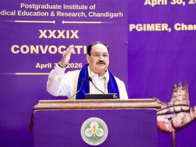 New Delhi [India], April 30 : Union Health Minister JP Nadda addressed the 39th Convocation Ceremony of Postgraduate Institute of Medical Education and Research (PGIMER), Chandigarh, on Thursday.