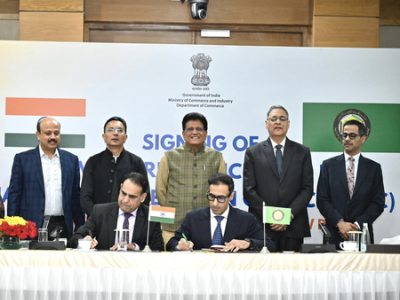 During the signing ceremony, the Commerce Minister emphasised that the FTA will be a force multiplier for the global good. He underlined that the FTA will bring predictability and stability, taking the relationship between the two sides to greater heights. He exuded confidence that FTA will enable the seamless flow of goods and services and attract investments while expanding job opportunities and fostering food and energy security for the region, elevating our deep economic ties.