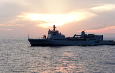 Notably, the ship is also fitted with a helicopter deck, extending its operational reach and enabling multi-domain missions.