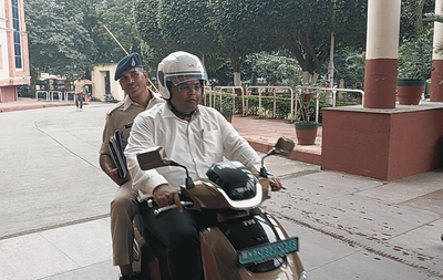 Indore Collector Shivam Verma gave a message on No-Car Day -- he came for duty using a two-wheeler vehicle.