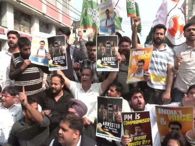 Jammu (Jammu and Kashmir) [India], February 25 : Jammu Congress members on Wednesday held a protest in Jammu over the arrest of Indian Youth Congress National President Uday Bhanu Chib following the 'shirtless' protest at AI Impact Summit in New Delhi.