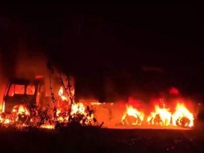 "The fire has been extinguished. The administration received information that a vehicle carrying lighter (flammable material) was hit from behind by another vehicle, causing the lighter to fly out and catch fire. Four vehicles have burned. There were some casualties. A person sleeping in the vehicle was burned, and the driver was also burned and has been taken to the hospital... The container on which the lighter was mounted was hit, and the fire started from that lighter... At present, the situation is under control, and the fires have been extinguished... But we will keep another vehicle ready, as there is a possibility that the lighter may still be on fire and could spread..." he said.