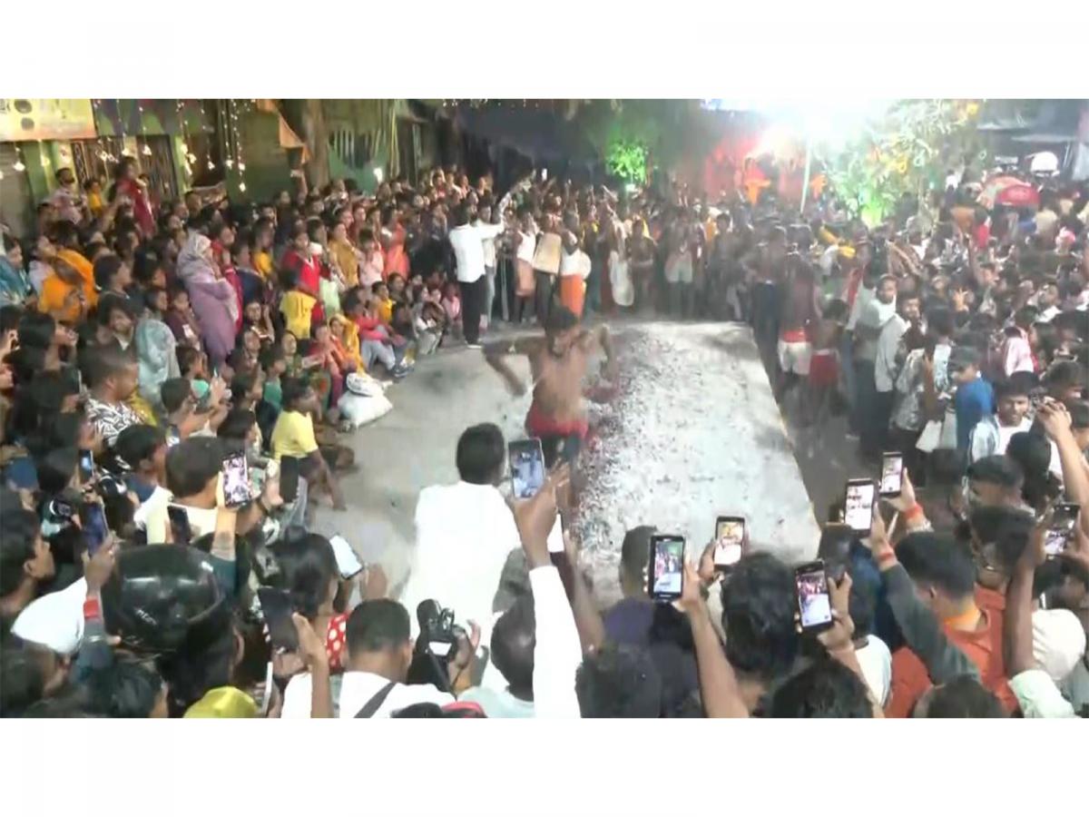 Ranchi (Jharkhand) [India], April 14 : People in Ranchi celebrated Manda, a traditional harvest festival marked by intense ritual observance, including a week-long fast followed by the unique practice of walking barefoot over a burning pyre set up at the centre of the festival ground.
