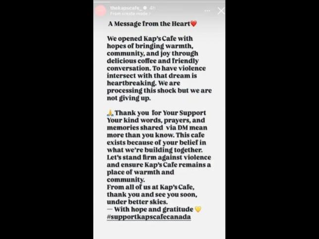 Sharing their thoughts via Instagram, the cafe conveyed deep sorrow over how their vision of spreading warmth and togetherness had been interrupted by such an act of violence. They expressed gratitude towards their well-wishers, thanking them for their support, kind messages, and prayers. The team emphasized that Kap’s Cafe was created to foster community through friendly conversations and great coffee, and they remain committed to that purpose. Urging people to reject violence and support unity, the statement ended with hope, appreciation, and a promise to continue serving with love under better circumstances.