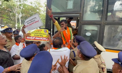 Bengaluru, April 28 The Bharatiya Janata Yuva Morcha (BJYM) members held a protest near the Bangalore International Centre ...