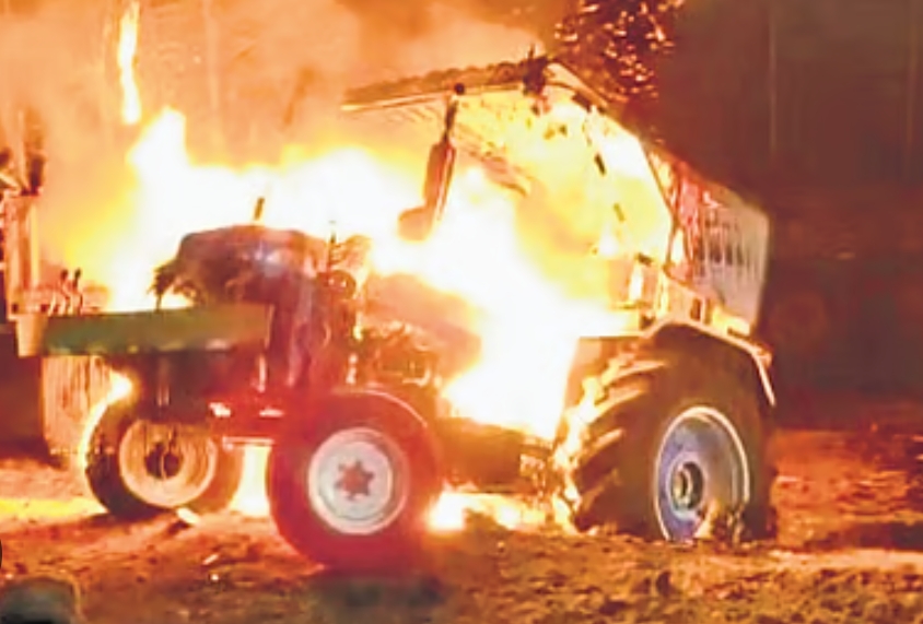 A protest by sugarcane farmers in Bagalkot, Karnataka, escalated into violence on Thursday when over 100 tractors carrying sugarcane were set on fire inside the Godavari Sugars Factory, plunging the area into turmoil. Eyewitness footage showed tractors engulfed in flames, sending thick plumes of smoke into the air. The unrest also saw two motorcycles torched amidst the chaos. Local authorities were caught off guard, with police personnel significantly outnumbered. Superintendent of Police Siddharth Goyal arrived at the scene as district officials struggled to regain control and prevent further damage.