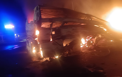 "Deaths of four passengers and the truck driver have been confirmed. All five bodies are completely charred and beyond recognition. The bodies have been sent for DNA profiling and post-mortem examination," he said.