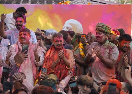 The atmosphere at Sisodia’s residence was marked by colours, music and festive cheer, as workers applied gulal to one another, exchanged greetings and danced to the beats of drums. The leaders joined in the festivities, extending Holi wishes to people across the country.