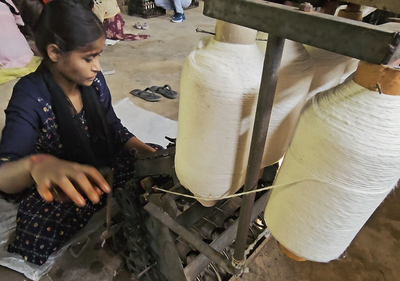 The centre’s manager, Dhanprasad Vishwakarma, shares that currently 15 to 20 charkhas are operational, mostly run by women who come after completing household responsibilities.