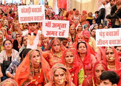 The mass protest in front of the Bikaner Collectorate, demanding Khejri tree conservation and the enactment of a Tree Protection Law, entered its fourth day on Thursday.