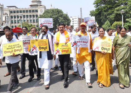 The protest was led by BJP State President and MLA B.Y. Vijayendra, Union Minister of State Shobha Karandlaje, Leaders of Opposition in Assembly and Council, R. Ashoka, Chalavadhi Narayanaswamy, respectively, and other prominent leaders.