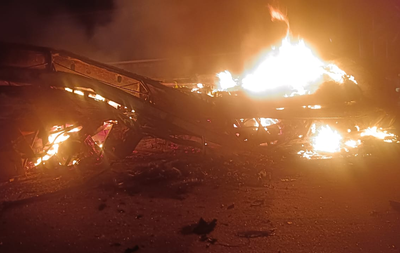 The bus assistant, Mohammad Sadiq, who also managed to escape after the container truck hit the bus, said, “We left Bengaluru around 9 p.m. There were 30 passengers on board. I was sleeping when the incident occurred. The truck hit the diesel tank. Due to the impact, I was thrown out of the bus. The driver was also thrown out.”