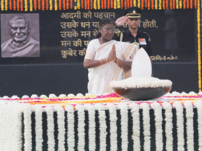 New Delhi, Aug 16 President Droupadi Murmu and Prime Minister Narendra Modi, along with several other dignitaries, paid floral tributes to former Prime Minister Atal Bihari Vajpayee at 'Sadaiv Atal' in New Delhi on Saturday, marking his death anniversary.