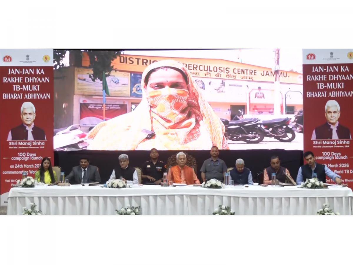 Jammu (Jammu and Kashmir) [India], March 24 : On the occasion of World Tuberculosis Day, Lieutenant Governor Manoj Sinha attended the launch of the 'TB Mukt Bharat Abhiyan-100 Days Campaign' at the Convention Centre in Jammu on Tuesday.