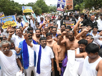 Bengaluru, Aug 1 The district units of the Madiga organisations staged a protest against the Congress-led government in Karnataka on Friday at the Freedom Park, demanding immediate implementation of internal reservation.