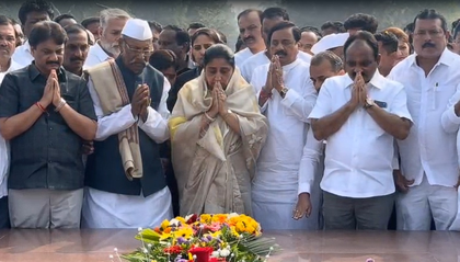 Deputy CM Sunetra Pawar offered a floral tribute at the memorial of the late Yashwantrao Chavan and later visited the residence of the late Vidip Jadhav at Lonand in Phaltan tehsil.