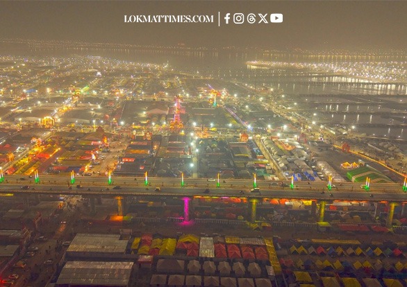 One image shows the ghats of Prayagraj beautifully illuminated, creating a remarkable sight. Tents are set up for devotees to rest after hectic day. Another image features a decorated bridge over the ghats, enhancing the festive atmosphere. Social media users are amazed by the nighttime drone views, with one commenting, "Looks like a true heaven on earth," and another saying, "This is simply awesome. Largest human gathering in the world". Users are parsing the government for the arrangements and facilities provided to devotees during this 32-day event.