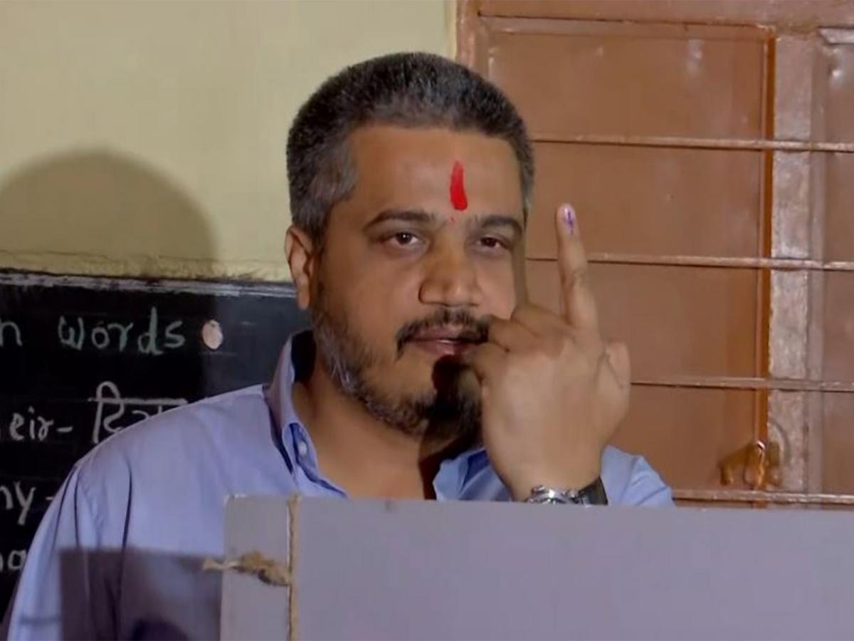 Rohit Pawar cast his vote at the polling booth at Zilla Parishad Primary School in Pimpli Village.