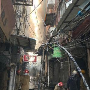 The official informed that they received a call about the fire incident at 4.18 a.m. at a shoe market near Bikaner Sweets in Gaffar Market after which as many as 39 fire tenders were immediately pressed into service.