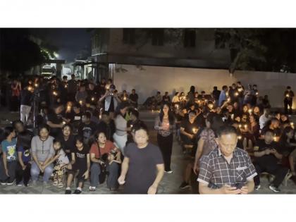 Churachandpur (Manipur) [India], April 22 : A candlelight vigil was held in Lamka in Manipur over the death of ...