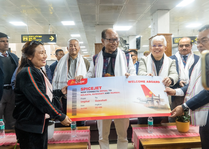 In a significant move to improve air connectivity in the state, the Chief Minister flagged off the commencement of SpiceJet’s direct flight services from Imphal to Guwahati, Kolkata and Mumbai at Bir Tikendrajit International Airport here.
