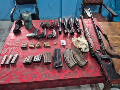 In a separate operation in Waheng Khuman Mamang Leikai area under Wangoi -PS, Imphal West, the security forces recovered 2 modified .303 rifles, 3 pistols with magazines, 6 magazines of different arms, 3 No. 36 HE Grenades, 23 rounds of live ammunition, 1 detonator, 4 mortar bomb shellsm 1 IED and 1 kg of explosives.