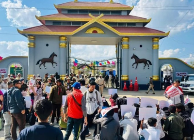On Thursday, as per the previous announcement, the demonstrators led by the Coordinating Committee on Manipur Integrity (COCOMI), an umbrella body of several Meitei civil society organisations of Manipur, gathered at Konung Mamang, near the main festival venue, to protest the holding of the festival.