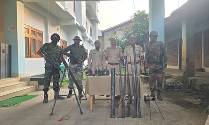 In a separate development, security forces recovered a cache of arms and ammunition from Khumkot village in Chandel district. The recovered items included four single-bore rifles, four Pompi rifles, seven Pompi shells, three grenades, a detonator, and five Baofeng radio sets, along with chargers.