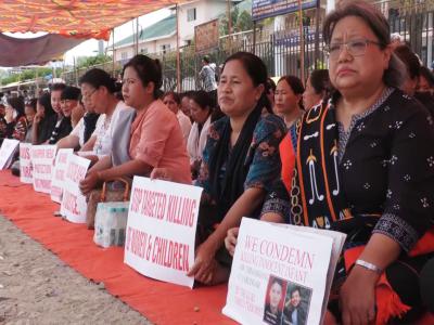 "This is a twin incident protest. On April 7, two innocent children were killed, and on April 18, innocent Tangkhul passengers travelling from Imphal to Ukhrul were ambushed. Two people were killed on the spot, many were injured, and several vehicles were damaged," he said.