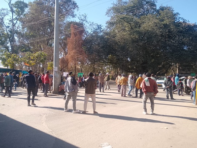 From early morning, protesters and villagers took to the streets, blocking major intersections across the district. Markets, shops, and educational institutions remained shut, while public transport services were completely suspended.