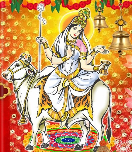 “She who is mounted on a white bull, adorned in white garments, pure. May Mahagauri bestow auspiciousness, delighting the great Lord. The worship of Mother Mahagauri, the eighth form of the primordial power Mother Durga, the creator of the universe, brings spiritual peace and the attainment of divine powers. May the devotees' resolves be fulfilled by Mother's grace, and may happiness, peace, prosperity, and positive energy flow into everyone's lives -- this is the prayer. Jai Maa Mahagauri!”
