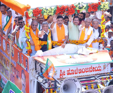He criticised the Congress government over corruption and price rise, urging voters to send a strong message by supporting the BJP.