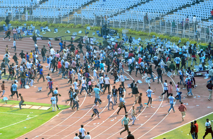 The situation gradually worsened, with chairs in the galleries being damaged. Eventually, fencing around the field was broken, and angry spectators stormed onto the pitch from multiple directions, resulting in widespread vandalism at the stadium.