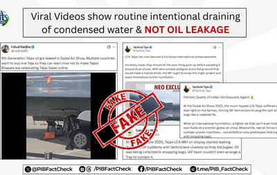 New Delhi, Nov 20 Condemning vested interests, the Ministry of Defence on Thursday issued a fact check against “fake” videos and messages on social media about an alleged “oil leakage” in the Indian LCA Tejas during the just-concluded Dubai Air Show 2025.