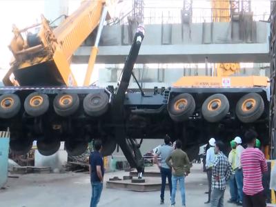 The mobile crane used to hoist the beam also toppled at the site during the incident.