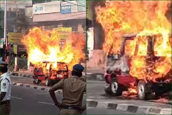 The incident occurred in the city when the driver jumped out on seeing fire starting in his vehicle.