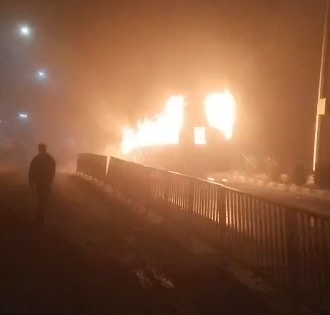 The incident took place around 5:15 a.m. in the Shri Dungargarh area when the bus, travelling from Jaipur to Bikaner, rammed into a stationary trailer, after which it was engulfed in flames.