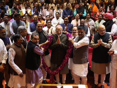 New Delhi, Dec 9 Prime Minister Narendra Modi was accorded a warm welcome at the NDA Parliamentary Party meeting held on Tuesday at the GMC Balayogi Auditorium in the Parliament Library Building.