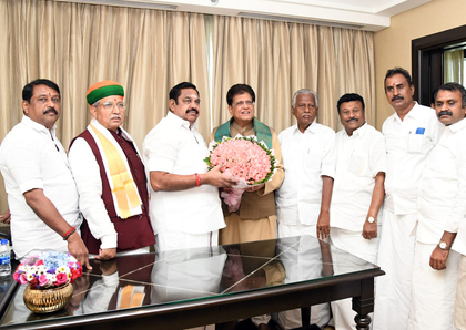 Later in the day, Goyal held a high-level meeting with Edappadi K. Palaniswami, General Secretary of the All India Anna Dravida Munnetra Kazhagam, at a city hotel.
