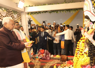 The Saraswati Puja was organised by the JDU IT Cell and witnessed the presence of several senior leaders, including Union Minister Rajiv Ranjan Singh alias Lalan Singh, along with Nishant Kumar, the Chief Minister’s son.