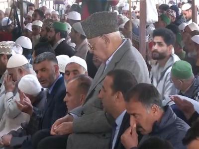 Srinagar (Jammu and Kashmir) [India], March 13 : National Conference (NC) chief Farooq Abdullah visited the Dargah Hazratbal in Srinagar and participated in the 'Alvida Jumma' (last Friday of Ramadan month) prayers.