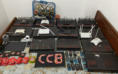 Before the arrest, the police searched his premises and seized several illegal items. Total 12 SIM boxes, a laptop, nine routers, a WiFi-equipped CCTV camera, 17 mobiles, 2,250 SIM cards, LAN, cables, etc. were seized.