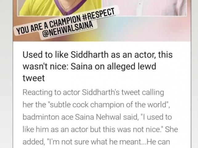 Responding to this Saina also said to Siddharth during an interaction with the news portal, she said "Ya I’m not sure what he meant. I used to like him as an actor but this was not nice. He can express himself with better words but I guess it’s Twitter n u remain noticed with such words n comments."