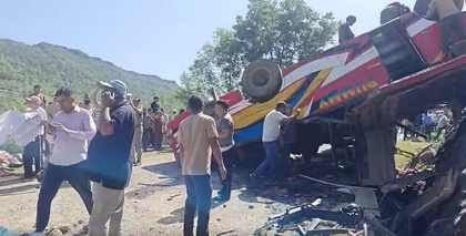 The cause of the accident was being ascertained, said the officials. The bus had turned turtle in the accident, and more details were awaited.