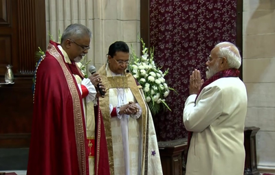 New Delhi, Dec 25 Prime Minister Narendra Modi on Thursday joined Christmas celebrations at the Cathedral Church of the Redemption in New Delhi, participating in prayers alongside a large congregation of Christians from Delhi and several parts of North India.