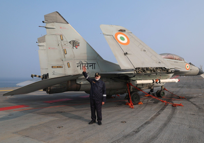 Aircraft such as the Chetak helicopter bearing the national flag and navy ensign, MH 60 R, Seaking, Kamov 31, Dornier, P8I, and the MiG 29K soared above INS Vikrant, symbolising India’s aerial capabilities and naval integration.