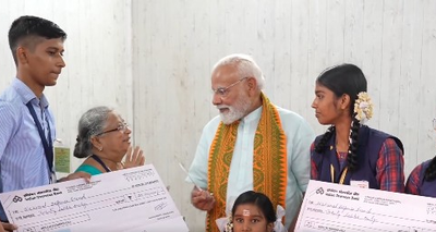 Nagercoil, April 16 Prime Minister Narendra Modi combined political outreach with personal interactions during his April 15 visit to Nagercoil in Tamil Nadu, where he met veteran educationist and social worker Gomatam Veeraraghavan Girija after more than three decades and later led a vibrant roadshow that drew large crowds.