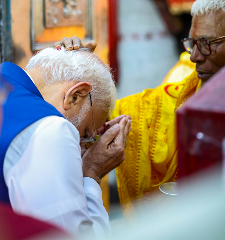 In the afternoon, PM Modi's convoy reached the Thanthania Kalibari, where he performed Kali aarti. The priest blessed the Prime Minister by placing flowers from the idol on his head.